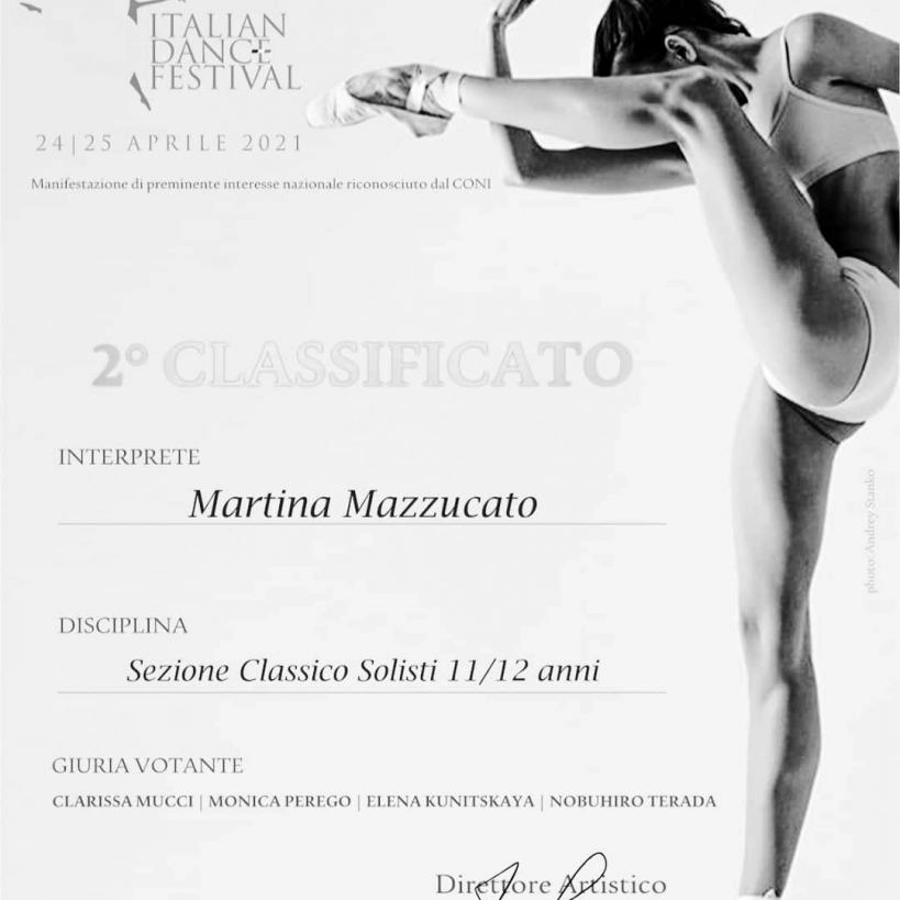 Un grazie speciale alla giuria Nobuhiro Terada, Monica Perego, Elena Kunitskaya, Clarissa Mucci per aver premiato il lavoro svolto e alle tue maestre Giulia Giacon e Maddalena Lucchetta!